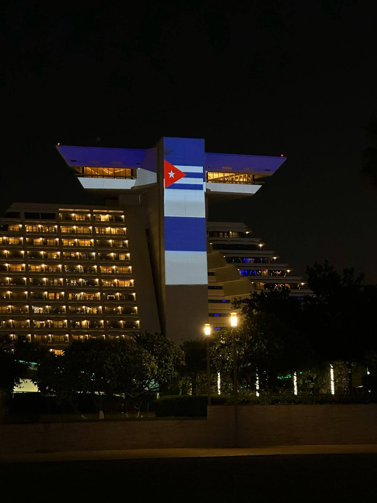 Nuestra bandera cubana, la más bella, iluminó este 1° de enero sitios emblemáticos de #Doha, Qatar, para celebrar el 67 Aniversario del Triunfo de la Revolución Cubana.