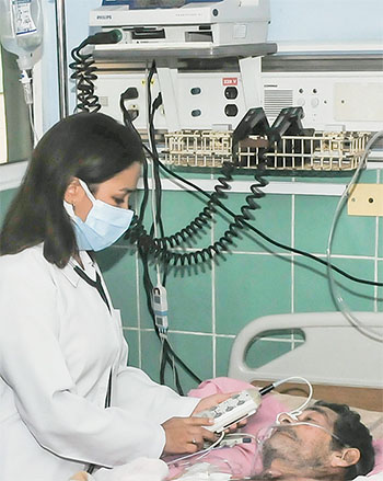 En las terapias intensivas el personal de salud se esfuerza por mantener con vida a estos pacientes hasta que llega el marcapasos. En la foto la doctora Lilian Gretel Cisneros Sánchez, jefa del Servicio de Cardiología del Hospital Nacional Enrique Cabrera. Foto: José Raúl Rodríguez Robleda